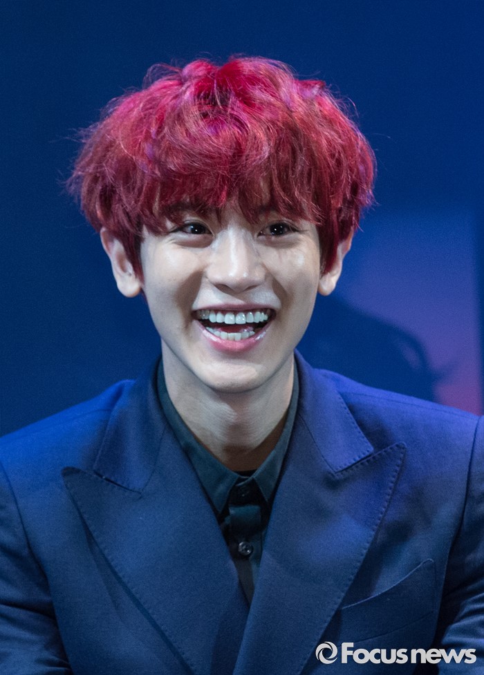 (서울=포커스뉴스) 8일 오전 서울 강남구 코엑스 아티움에서 열린 아이돌 그룹 엑소의 3집 앨범 'EX'ACT' 발표 쇼케이스에 참석한 멤버 찬열이 미소를 짓고 있다.