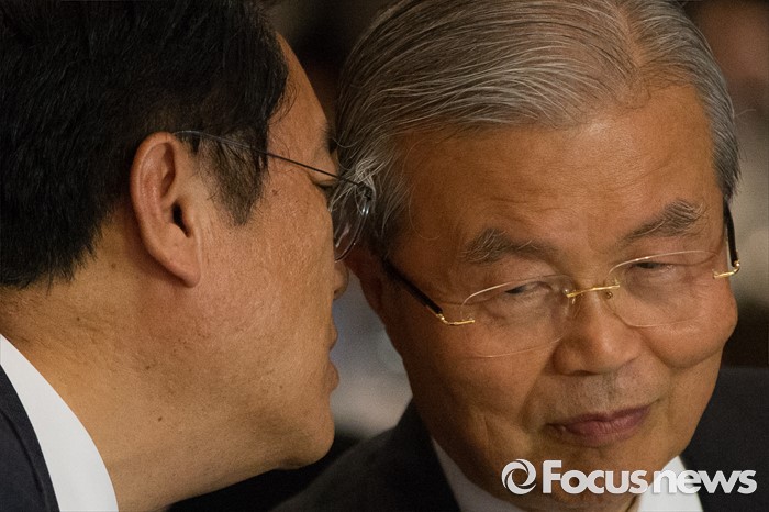 | △ 김종인 대표에게 귀엣말 하는 정진석 대표 |