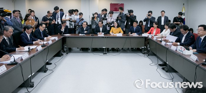 (서울=포커스뉴스) 9일 오전 서울 여의도 국회에서 열린 산업·기업 구조조정 관련 당정간담회에 참석한 김광림(오른쪽) 새누리당 정책위의장이 모두발언을 하고 있다.