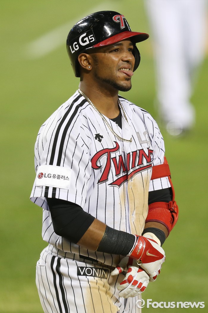 (서울=포커스뉴스) 8일 서울 잠실구장에서 열린 2016 프로야구 삼성-LG 경기 4회말 무사 1루에서 삼성 장필준의 투구에 왼손을 맞은 LG 히메네스가 맞은 부위를 감싸 쥐고 통증을 참고 있다.