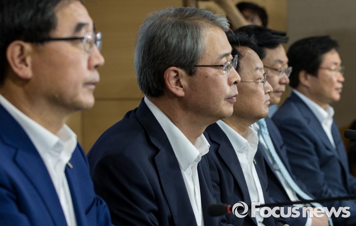 ▲공중에 날렸다는 의견에 대해 동의할 수 없다. STX 조선해양 구조조정에 쓰였다. 2조8000억원은 협력업체 지원에, 나머지는 채권자 상환자금, 은행들 이자로 지급됐다. 시장 충격을 줄여 정상화 하는데 들었던 비용들이다. 대우조선해양도 4조2000억원을 살리기 위해 쓰이고 있다. 조선산업은 선수금 산업이다. 선수금이 계속 들어와야 운영된다. RG(은행들의 선수금 보증)에 대한 콜이 일어나지 않도록 하는 방안으로 구조조정을 지원하고 있다.(서울=포커스뉴스) 8일 오전 서울 종로구 정부서울청사에서 이기권(왼쪽부터) 고용노동부 장관, 임종룡 금융위원장, 유일호 부총리 겸 기획재정부 장관, 주형환 산업통상자원부 장관, 김영석 해양수산부 장관이 구조조정 추진현황 및 계획에 대해 발표 전 생각에 잠겨있다. 2016.06.08 양지웅 기자