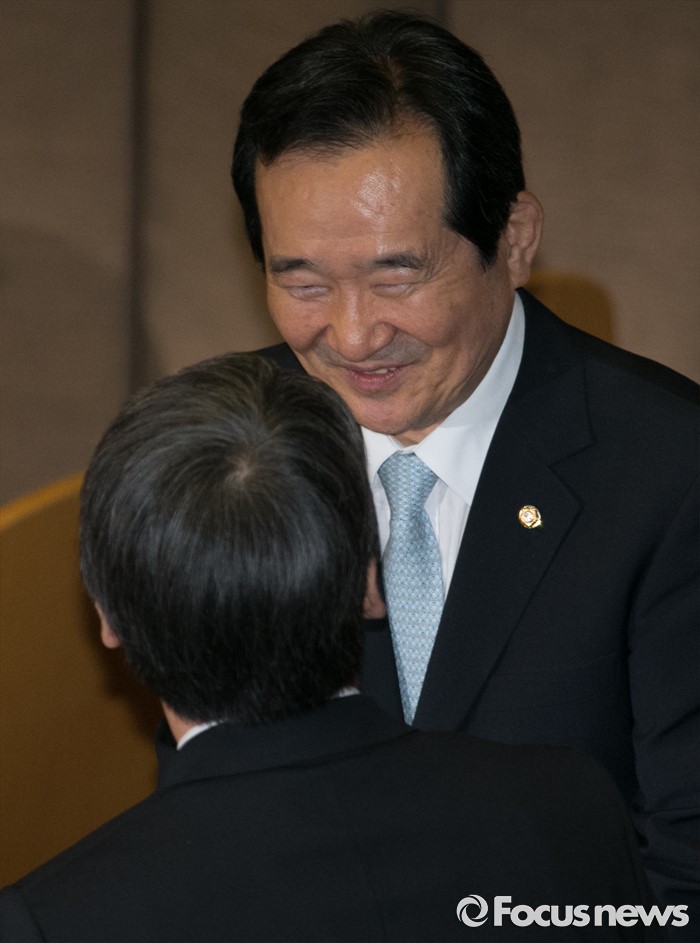 (서울=포커스뉴스) 9일 오후 서울 여의도 국회에서 열린 20대 국회 첫 본회의에서 국회의장 후보인 정세균(오른쪽) 더불어민주당 의원과 안철수 국민의당 상임공동대표가 인사하고 있다. 정 의원은 이날 20대 국회 전반기 국회의장으로 공식 선출됐다.