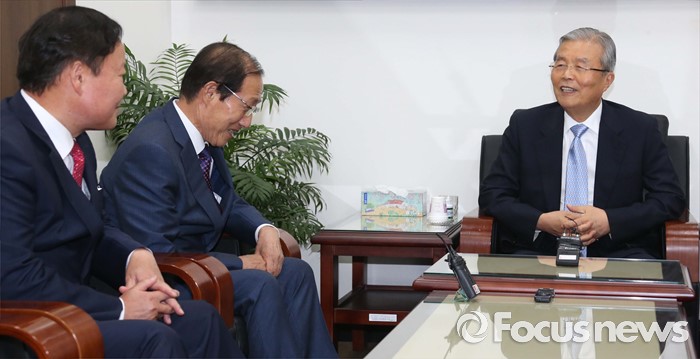 (서울=포커스뉴스) 김종인(오른쪽) 더불어민주당 비대위 대표가 10일 오후 서울 여의도 국회를 방문한 이원종(가운데) 대통령비서실장, 김재원 청와대 정무수석과 면담을 하고 있다.