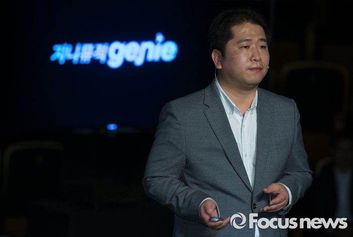 (서울=포커스뉴스) 9일 오전 서울 종로구KT스퀘어에서 열린 KT뮤직 VR서비스 론칭 기자간담회에 참석한 김성욱 KT뮤직 대표가 서비스 관련 발표를 하고 있다.