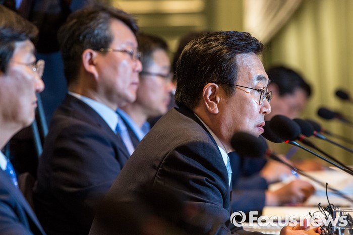 (서울=포커스뉴스) 서병수 부산광역시장이 8일 오전 서울 여의도 켄싱턴호텔에서 열린 '새누리당 부산시당-부산광역시 당정 협의'에 참석해 모두발언 하고 있다. 이날 부산지역 새누리당 의원 및 부산광역시 관계자들은 당정협의를 통해 가덕신공항 유치와 조선-해양산업 위기 극복에 대한 대책 의견을 교환 했다.