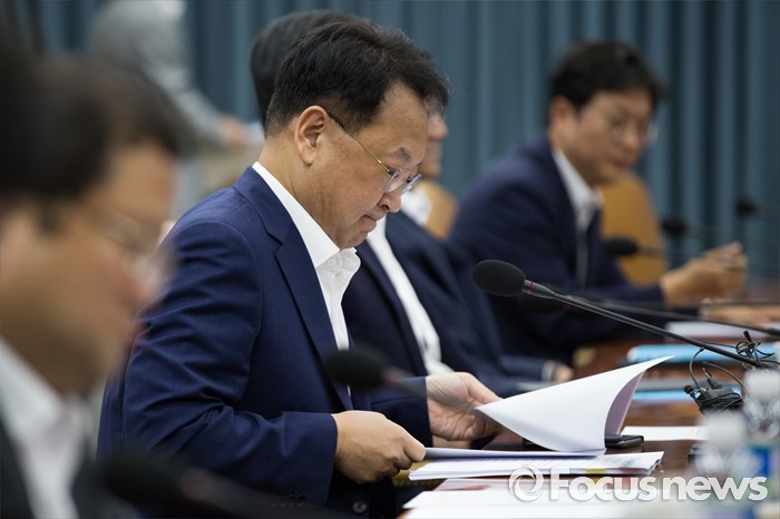 (서울=포커스뉴스) 9일 서울 종로구 정부서울청사에서 열린 제 8차 경제관계장관회의에서 유일호 부총리 겸 기획재정부 장관이 자리에 착석해 자료를 보고 있다.