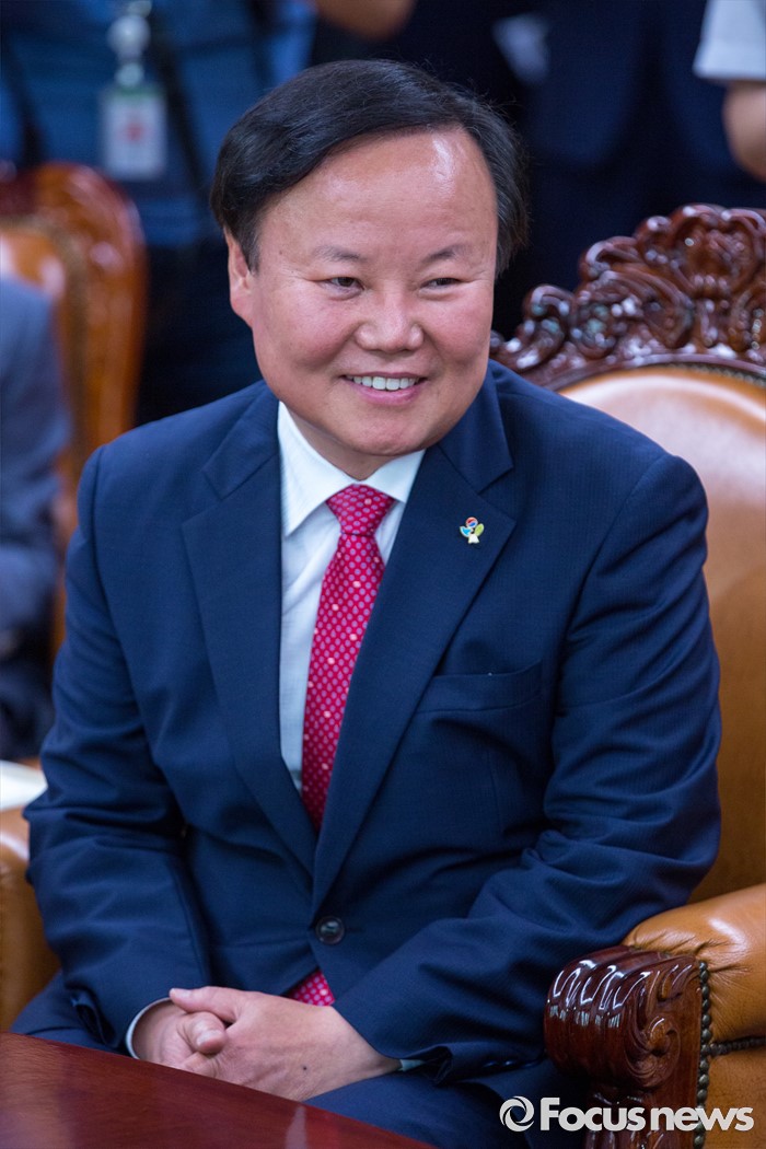 (서울=포커스뉴스) 김재원 청와대 정무수석이 10일 오전 서울 여의도 국회에서 정세균 국회의장을 예방 하고 있다.