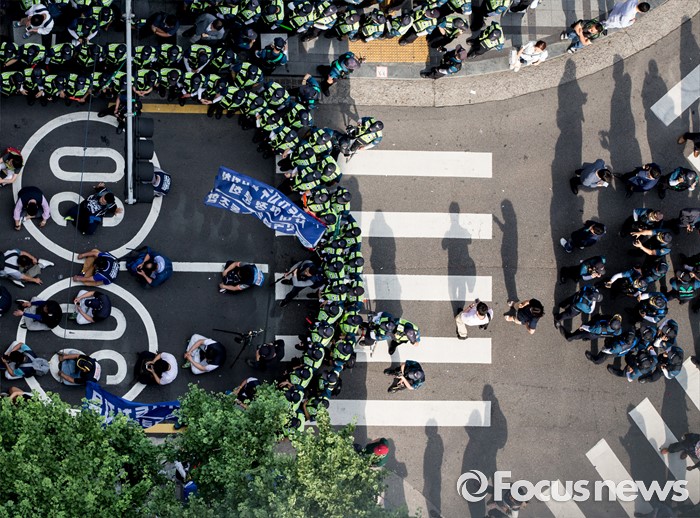 | △ 대치하는 노동자와 경찰들 |