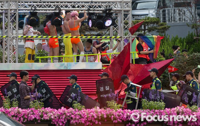 (서울=포커스뉴스) 11일 오후 제17회 퀴어문화축제 참가자들이 서울광장을 출발해 을지로 일대를 지나며 퀴어퍼레이드를 벌이고 있다.
