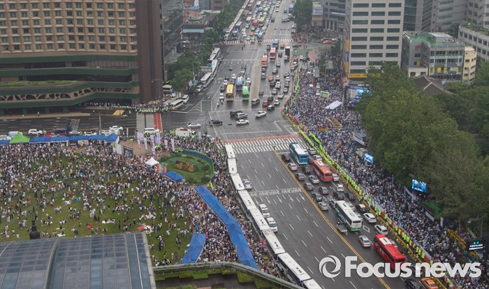 (서울=포커스뉴스) 11일 오후 서울광장(죄측)과 대한문 앞에서 각각 '제17회 퀴어문화축제'와 '2016 서울광장 동성애축제 반대 국민대회'가 열리고 있다.