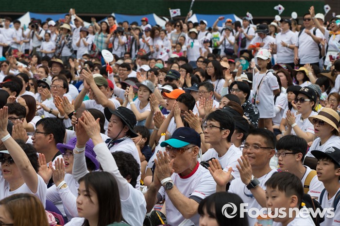 (서울=포커스뉴스) 12일 오전 서울 중구 서울시청 광장에서 열린 '제7회 나라사랑 고궁걷기 대회'에 시민들이 참가하고 있다.