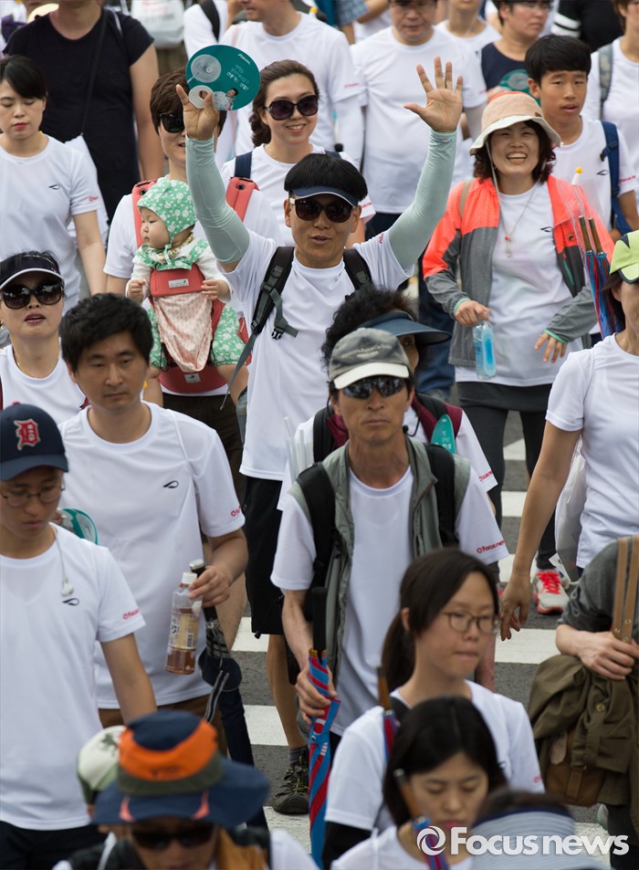 (서울=포커스뉴스) 12일 오전 서울 중구 서울시청 광장에서 열린 제 7회 나라사랑 고궁걷기 대회에 참가한 시민들이 경복궁을 지나 창경궁을 향해 걷고 있다.