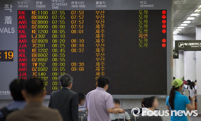 (서울=포커스뉴스) 13일 오전 서울 김포공항 국내선 청사에 항공기 도착 정보가 게시되고 있다. 지난 12일 오후 저시정특보가 내려진 제주공항은 짙은 안개와 연결편 문제로 150여편 지연 운항, 2편 결항했지만 13일 오전 6시에 특보를 해제했으며 오전 9시 현재 모든 항공편이 정상 운항하고 있다고 밝혔다.
