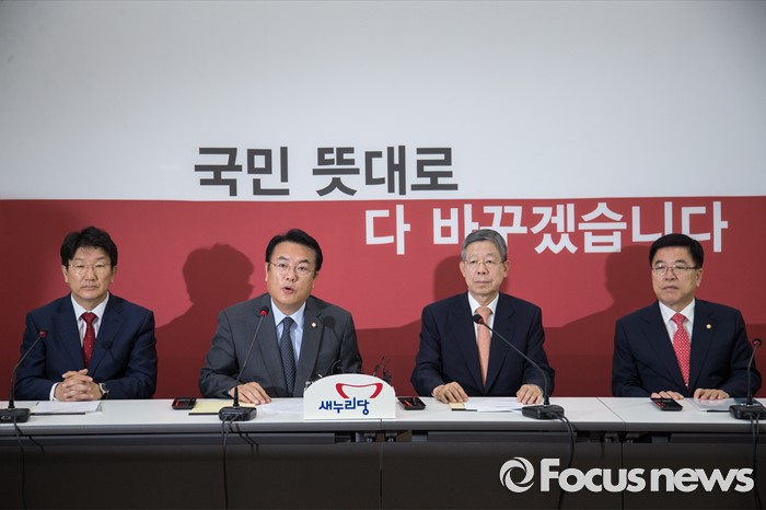 쪽서울=포커스뉴스) 정진석(왼쪽 두번째) 새누리당 원내대표가 13일 오전 서울 여의도 국회에서 열린 혁신비상대책위원회의에 참석해 발언하고 있다. 오른쪽부터 김광림 정책위의장, 김희옥 혁신위원장, 정 대표