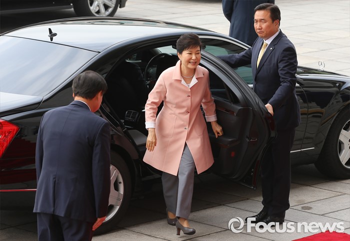 (서울=포커스뉴스) 박근혜 대통령이 13일 오전 서울 여의도 국회에서 열린 20대 국회 개원식 연설을 위해 본청에 도착해 차량에서 내리고 있다.