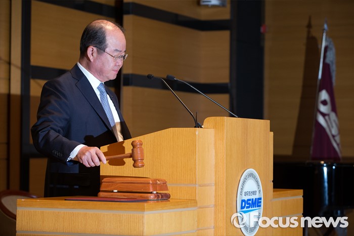 (서울=포커스뉴스) 13일 오전 서울 중구 대우조선해양 본사 대회의실에서 열린 '제17기 제2차 임시주주총회'에 참석한 정성립 대우조선해양 대표이사가 의안을 상정하고 있다.