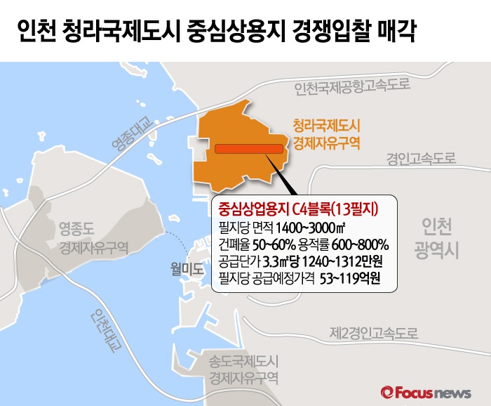(서울=포커스뉴스) 13일 LH(한국토지주택공사)는 인천 청라국제도시 중심상용지 13필지를 경쟁입찰 방식으로 매각한다고 밝혔다. 입찰신청은 6월 22일, 발표는 23일 예정이다.
