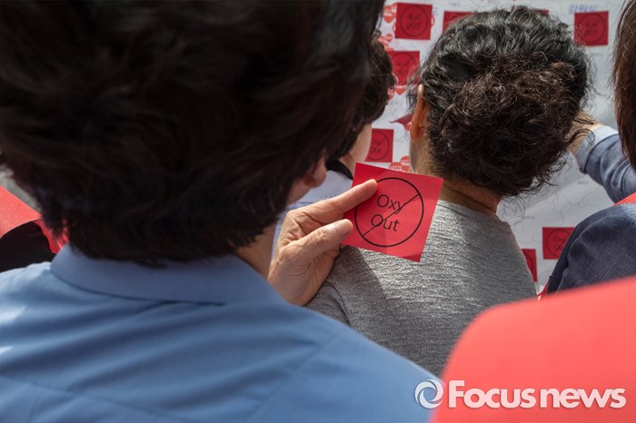 (서울=포커스뉴스) 13일 오전 서울 용산구 롯데마트 서울역점 앞에서 소비자단체 회원들이 롯데마트의 자사 가습기 살균제품 피해에 대한 책임있는 행동을 촉구하고 옥시 제품 판매 중단을 요구하는 집회를 하고 있다.