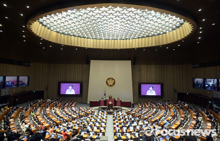 (서울=포커스뉴스) 박근혜 대통령이 13일 오전 서울 여의도 국회에서 열린 20대 국회 개원식에 참석해 연설을 하고 있다.