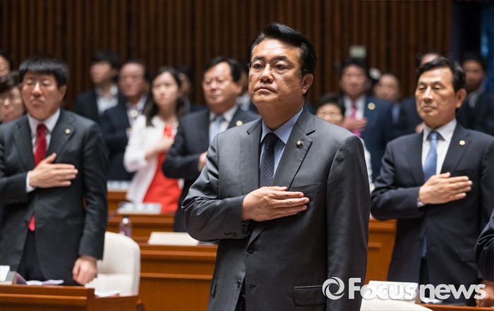 | △ 정진석, 국기에 대한 경례! |