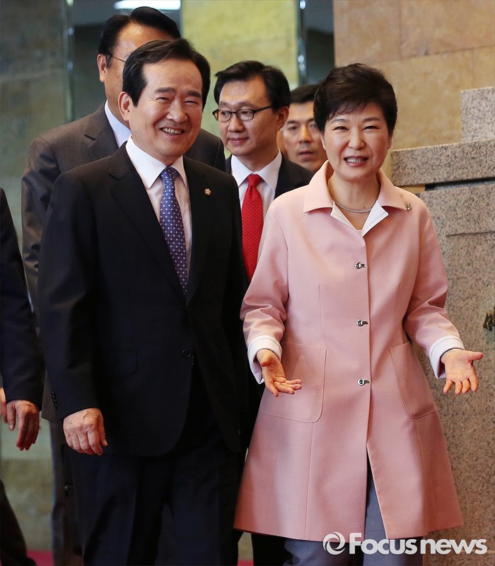 (서울=포커스뉴스) 박근혜 대통령이 13일 오전 서울 여의도 국회에서 열린 20대 국회 개원식에 참석해 여야 지도부 및 5부 요인과 간담회를 가진 뒤 정세균 국회의장의 배웅을 받으며 나서고 있다.