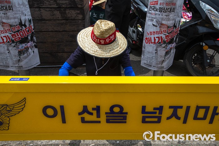 (서울=포커스뉴스) 13일 오후 서울 용산구 서울역광장에서 '제 29주년 6.13 정신계승 전국노점상대회'가 열리고 있다. 6.13 대회는 1988년 6월 13일 억눌린 노점상의 울분이 처음 세상 밖으로 터져 나온 날을 기념하기 위한 날이며 이번 집회에서는 노점관리대책 중단, 노점 생존권 보장, 기본법 및 노점상보호 특별법 제정 등을 요구했다.