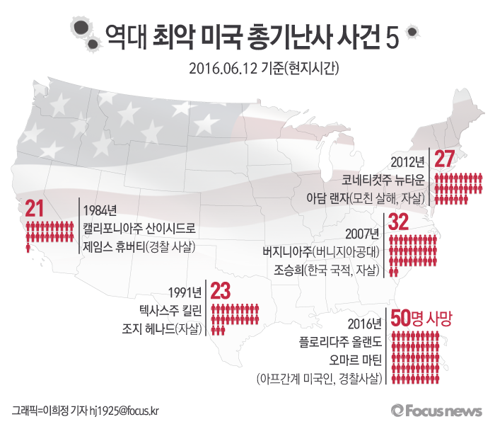 | △ [그래픽] 역대 최악 미국 총기 난사 사건 5 |
