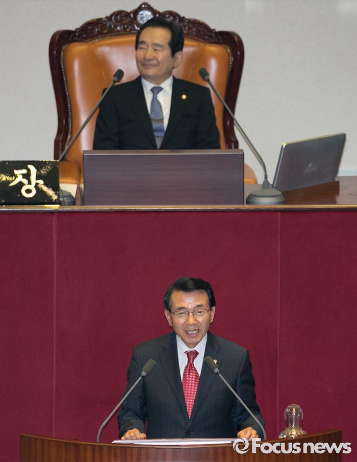 (서울=포커스뉴스) 13일 오후 서울 여의도 국회에서 열린 343회 국회(임시회) 2차 본회의에 참석한 심재권 신임 외교통일위원장이 당선 인사를 하고 있다.