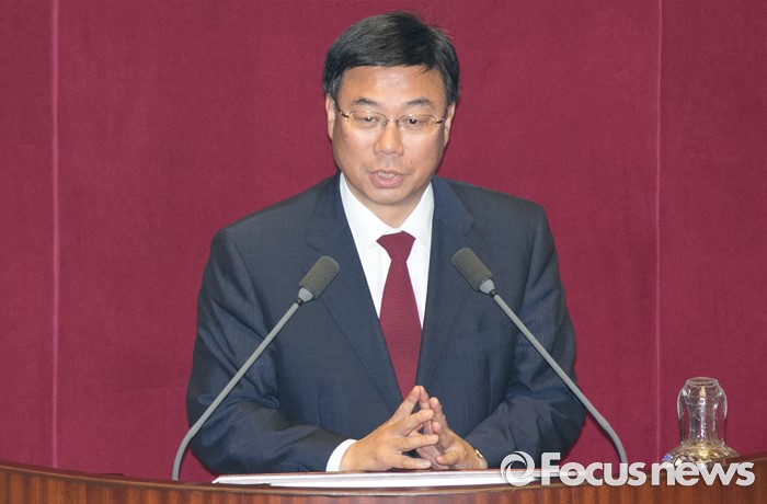 (서울=포커스뉴스) 13일 오후 서울 여의도 국회에서 열린 343회 국회(임시회) 2차 본회의에 참석한 신상진 신임 미래창조과학방송통신위원장이 당선 인사를 하고 있다.