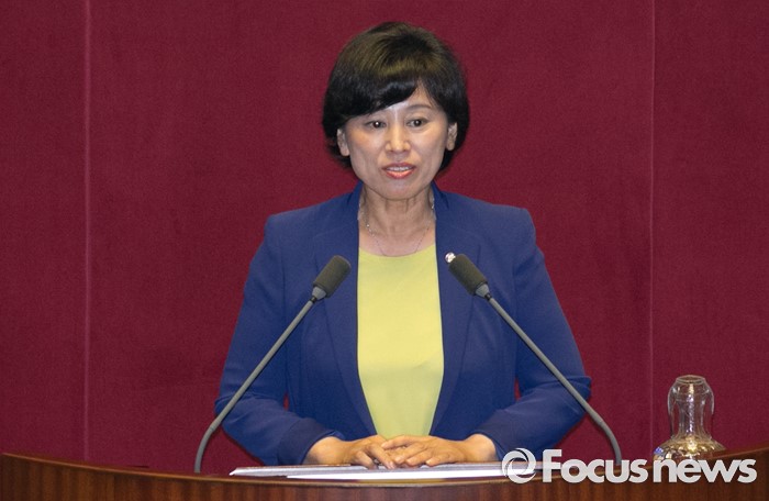 (서울=포커스뉴스) 13일 오후 서울 여의도 국회에서 열린 343회 국회(임시회) 2차 본회의에 참석한 남인순 신임 여성가족위원장이 당선 인사를 하고 있다.