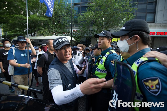 | △ 경찰과 대치중인 집회 참가자 |