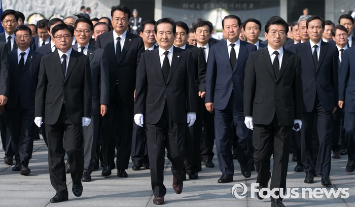 (서울=포커스뉴스) 정세균 국회의장과 정진석 새누리당 원내대표, 우상호 더불어민주당 원내대표, 박지원 국민의당 원내대표, 20대 국회 전반기 상임위원장들이 14일 오전 동작구 국립서울현충원을 방문해 참배를 마친 뒤 이동하고 있다.