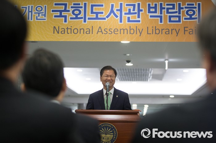(서울=포커스뉴스) 천정배 국민의당 공동대표가 14일 오전 서울 여의도 국회 의원회관에서 열린 국회도서관 박람회 개막식에 참석해 축사하고 있다.