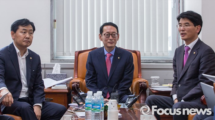 (서울=포커스뉴스) 14일 오전 서울 여의도 국회에서 3당 원내수석이 회동에 앞서 모두발언 하고 있다. 왼쪽부터 김관영 국민의당 원내수석부대표, 김도읍 새누리당 원내수석부대표, 박완주 더불어민주당 원내수석부대표.