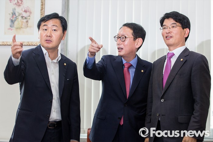 (서울=포커스뉴스) 14일 오전 서울 여의도 국회에서 3당 원내수석이 회동에 앞서 대화를 나누고 있다. 왼쪽부터 김관영 국민의당 원내수석부대표, 김도읍 새누리당 원내수석부대표, 박완주 더불어민주당 원내수석부대표.