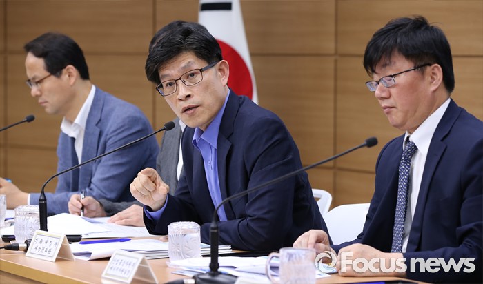 (세종=포커스뉴스) 노형욱 기획재정부 재정관리관이 지난 13일 오전 정부세종청사 기재부 브리핑룸에서 열린 공공기관(에너지·환경·교육분야) 기능조정 관계부처 합동 사전브리핑에서 공공기관 기능조정 방안의 주요내용을 설명하고 있다. 왼쪽부터 이민호 환경부 자연보전국장, 노형욱 재정관리관, 채희봉 산업통산사원부 에너지자원실장.