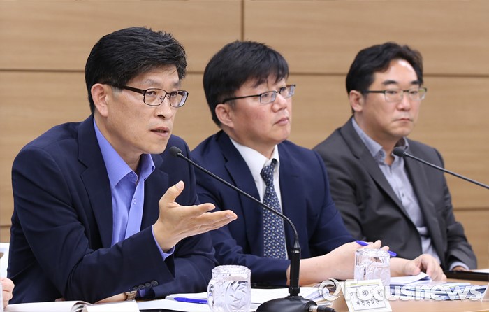 (세종=포커스뉴스) 노형욱 기획재정부 재정관리관이 지난 13일 오전 정부세종청사 기재부 브리핑룸에서 열린 공공기관(에너지·환경·교육분야) 기능조정 관계부처 합동 사전브리핑에서 공공기관 기능조정 방안의 주요내용을 설명하고 있다. 왼쪽부터 노형욱 재정관리관, 채희봉 산업통산사원부 에너지자원실장, 나향욱 교육부 정책기획관.