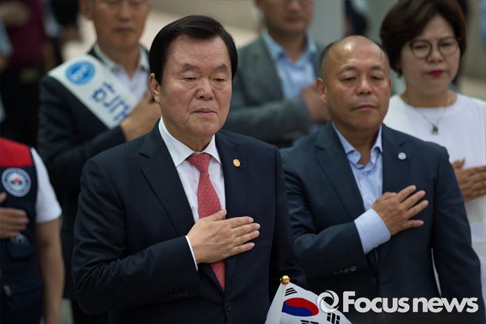 | △ 국민의례하는 김경재 한국자유총연맹 중앙회장 |