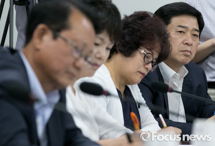 (서울=포커스뉴스) 14일 오후 서울 여의도 국회에서 열린 맞춤형 보육 관련 당정간담회에 참석한 정광진(오른쪽 첫번째) 한국어린이집총연합회장과 의원들이 방문규 보건복지부 차관의 발언을 듣고 있다.