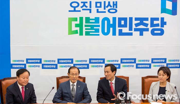 (서울=포커스뉴스) 우상호(오른쪽 두 번째) 더불어민주당 원내대표가 14일 오후 서울 여의도 국회에서 이원종(왼쪽 두 번째) 대통령비서실장과 면담하고 있다.