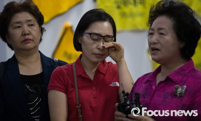 (서울=포커스뉴스)14일 오후 서울 중구 서울시민청에서 열린 '2000일간의 기록-가습기살균제 피해 사진전' 개전식에 참석한 가습기살균제 피해자 가족이 눈물을 닦고 있다. 이번 전시는 23일까지 열리며 가습기살균제 피해자 사진과 항의행동 기록, 희생자에 대한 추모 기록 등이 전시된다.