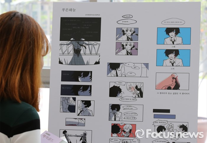 (세종=포커스뉴스) 14일 오후 세종시 정부세종청사 15동 대강당에서 열린 생명존중 교육자료 및 수기공모전 시상식에서 참가자가 수상작품을 바라보고 있다.