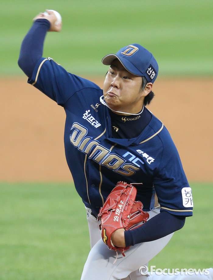 (서울=포커스뉴스) 14일 서울 잠실구장에서 열린 2016 프로야구 NC-LG 경기에서 1회말 NC 선발투수 이민호가 투구하고 있다.