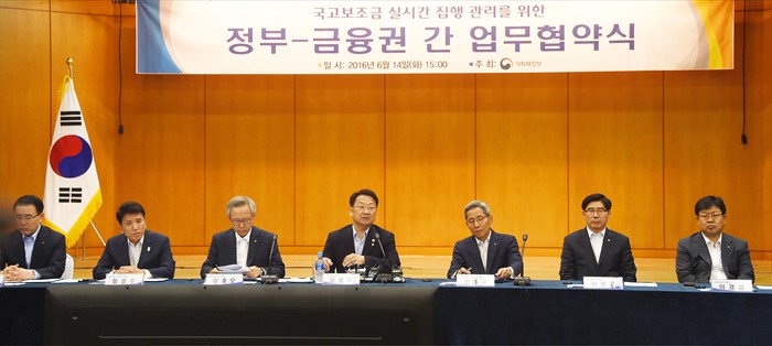 (서울=포커스뉴스) 유일호 부총리 겸 기획재정부 장관이 6월 14일 오후 서울 명동 은행연합회에서 열린 '정부-금융권 간 보조금 집행관리 업무협약식'에 참석, 발언을 하고 있다. <사진제공=기획재정부>