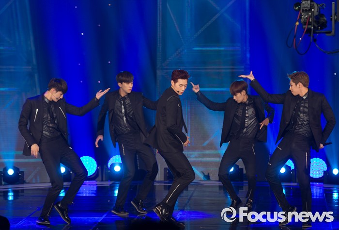(서울=포커스뉴스) 14일 오후 서울 마포구 SBS프리즘 타워에서 열린 SBS MTV '더쇼' 생방송 현장에 참여한 아이돌 그룹 크나큰의 멤버들이 무대를 선보이고 있다.