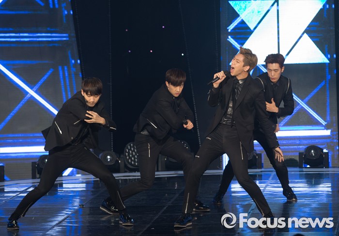 (서울=포커스뉴스) 14일 오후 서울 마포구 SBS프리즘 타워에서 열린 SBS MTV '더쇼' 생방송 현장에 참여한 아이돌 그룹 크나큰의 멤버들이 무대를 선보이고 있다.