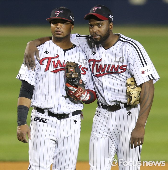 | △ 히메네스와 어깨동무한 LG 소사 |