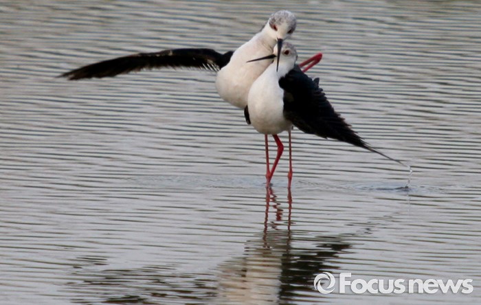 (인천=포커스뉴스) 짝짓기를 마친 장다리물떼새 부부가 부리를 맛대고 몸을 비비며 사랑을 서로 확인하고 있다.