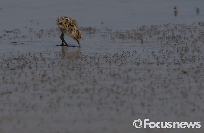 (인천=포커스뉴스) 부화한지 반나절 된 장다리물떼새 새끼가 인천시 영종도 매립지 습지가에서 작은 수서곤충을 잡아먹고 있다.