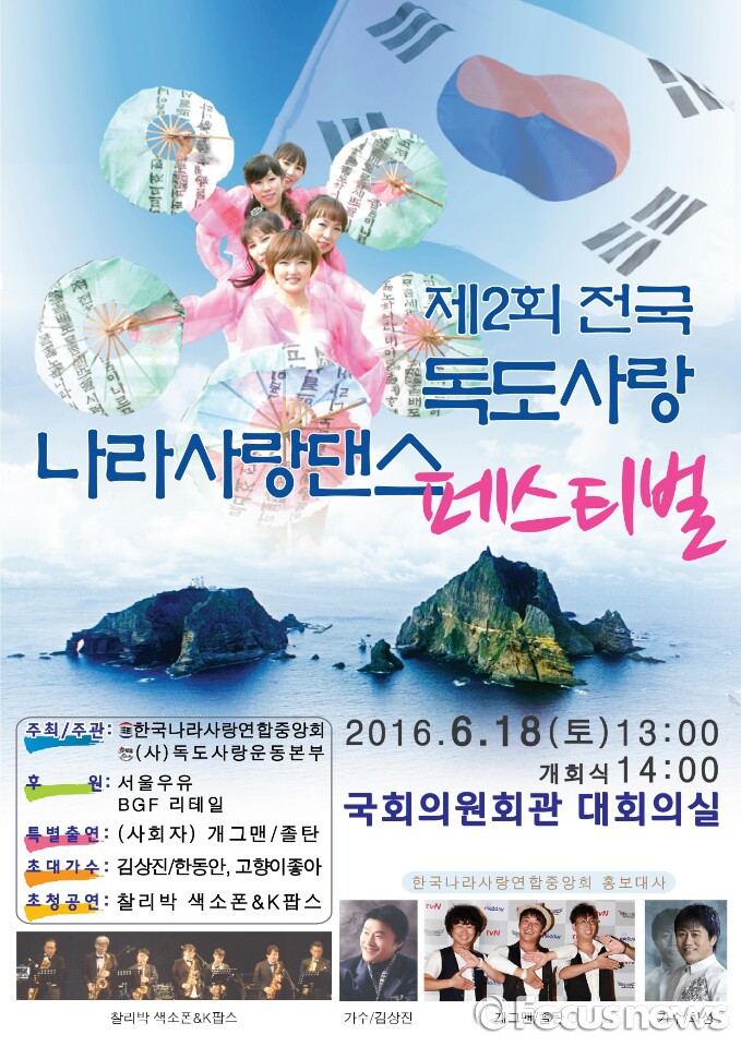 (서울=포커스뉴스) 해양수산부 인가 사단법인 독도사랑운동본부가 오는 18일 '제2회 독도사랑·나라사상 댄스 페스티벌'을 개최한다.